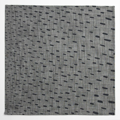 Details: Yarn dyed gray cotton chambray, printed with matte white water based ink.