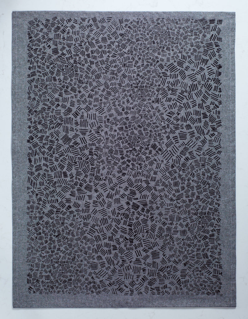 Details: Hand printed with black water based ink, hemmed on 4 sides with a loop for hanging.